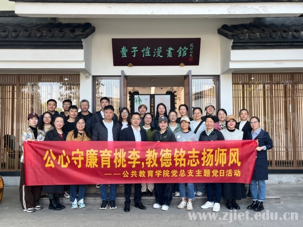 为深入贯彻落实党的二十届四中全会精神,深化廉洁文化建设,推动“五育融合”教育实践,11月15日,公共教育学院党总支赴桐乡市丰子恺纪念馆,开展“公心守廉育桃李,教德铭志扬师风”主题党日活动。学校纪委书记、学院联系领导吴刚群一同参加活动。 丰子恺纪念馆作为浙江省廉政文化教育基地,以“缘缘堂”故居为核心,通过漫画、书画、文献等展品,生动展现了这位艺术大师“以童心观世,以清廉立身”的精神品格。通过实地参观、艺术浸润与思想研讨,学院全体教师在丰子恺先生的家国情怀与艺术精神中汲取廉洁力量,筑牢师德根基。“丰子恺先生用一生践行‘先器识,后文艺’的教育理念,正是新时代教师廉洁从教的生动范本。我们要将廉洁教育融入课堂教学、课程体系和教材建设,引导学生扣好人生第一粒扣子。”现场教师的感言引起共鸣。 此次主题党日活动不仅是一次文化寻根之旅,更成为公共教育学院深化党纪学习教育、构建清廉校园的生动实践。未来,学院将持续以“廉”为笔,书写五育融合的育人新篇,为培养担当民族复兴大任的时代新人注入精神动力。